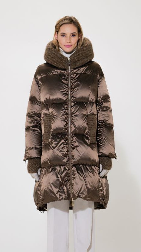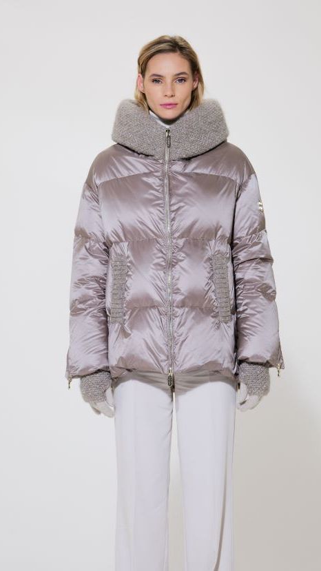 Gli shearling, le giacche imbottite in vera piuma e le giacche in pelle di vario genere sono pensati come compagni di viaggio nelle giornate più fredde: ogni capo custodisce la forza silenziosa dell’inverno, raccontando una femminilità sicura e raffinata che non teme la stagione più intensa dell’anno.
