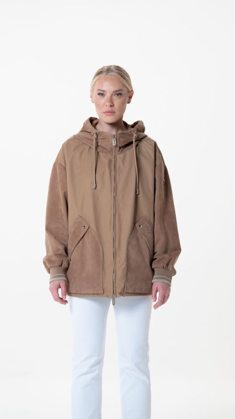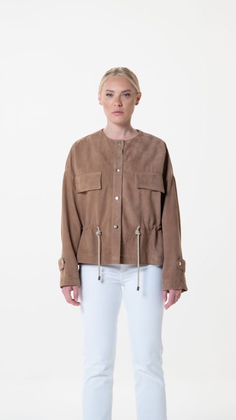 Le silhouette si muovono con naturalezza, enfatizzando il dinamismo e la fluidità dei materiali. Le giacche in camoscio leggero, protagoniste indiscusse della collezione, regalano un tocco di raffinata nonchalance: il loro appeal soft-touch e la loro estrema versatilità le rendono perfette per le serate più fresche, senza rinunciare a un’attitudine sofisticata anche durante il giorno.